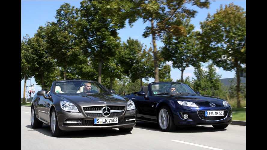 Mazda MX-5 gegen Mercedes SLK im Vergleich Spätzle oder Sushi? Von Roland Hildebrandt Vergleichstests - 8 Aug. 2011