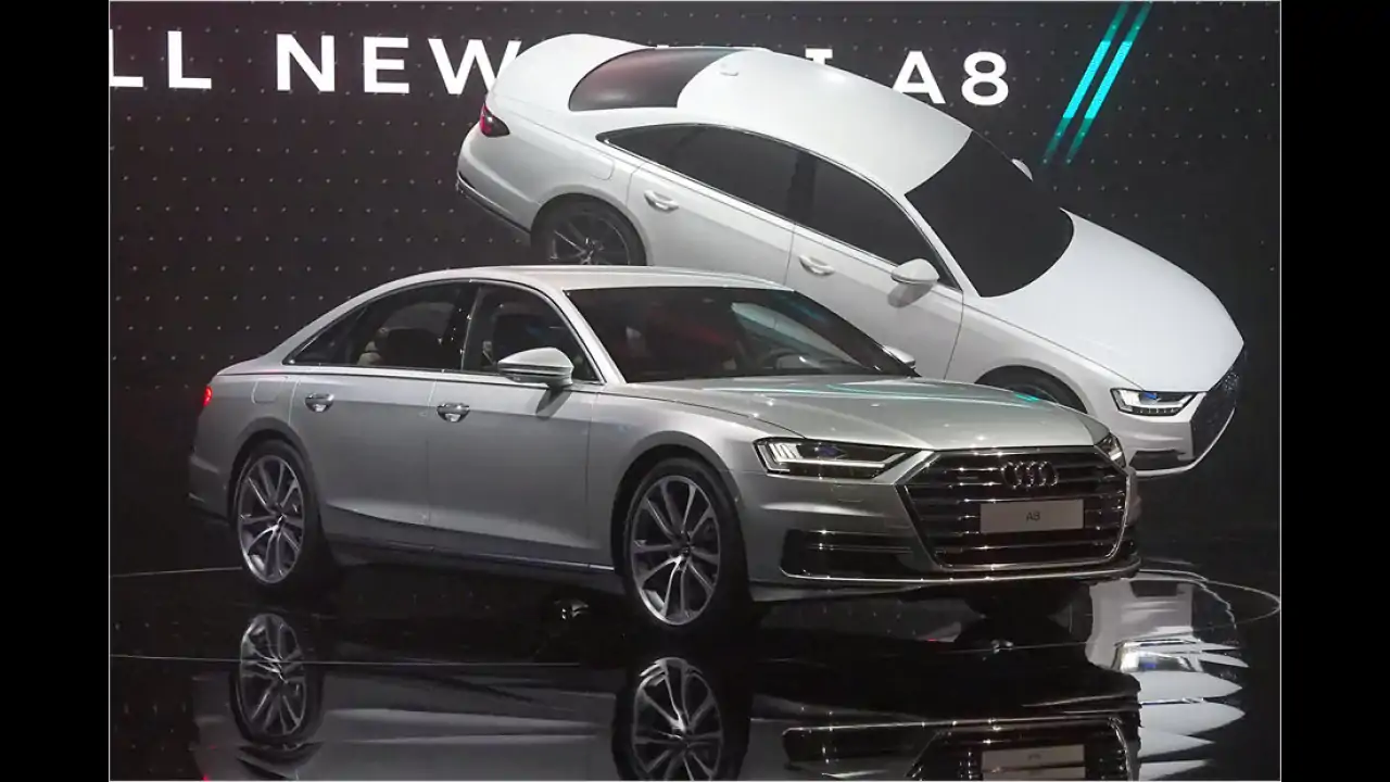 Auch die zweite Revolution im neuen A8 hat viel mit Komfort zu tun: Laut Audi wurde der A8 als erstes Serienauto der Welt speziell für hochautomatisiertes Fahren des Level 3 entwickelt. So übernimmt der ,AI Staupilot" per Tastendruck auf Autobahnen und Bundesstraßen mit baulicher Trennung bis 60 km/h die Fahraufgabe. Der Fahrer kann sich je nach geltenden Landesvorschriften zum Beispiel dem Bordfernsehen widmen. Eine kleine Kamera im Cockpit erkennt, ob der Fahrer müde wird oder einschläft. Der Wagen kümmert sich um Anfahren, Beschleunigen, Lenken und Bremsen. Dafür nutzt Audi als erster Autohersteller einen Laserscanner. Unter dem Label ,AI" gibt es überdies die Möglichkeit, dass der A8 unter Überwachung des Fahrers, der eine App nutzt, selbsttätig in eine Parklücke oder Garage steuert. Dabei muss der Fahrer nicht im Auto sitzen. Nach Beendigung des Manövers legt das System die P-Stufe der stets serienmäßigen Achtgang-Automatik ein und macht den Wagen aus.
