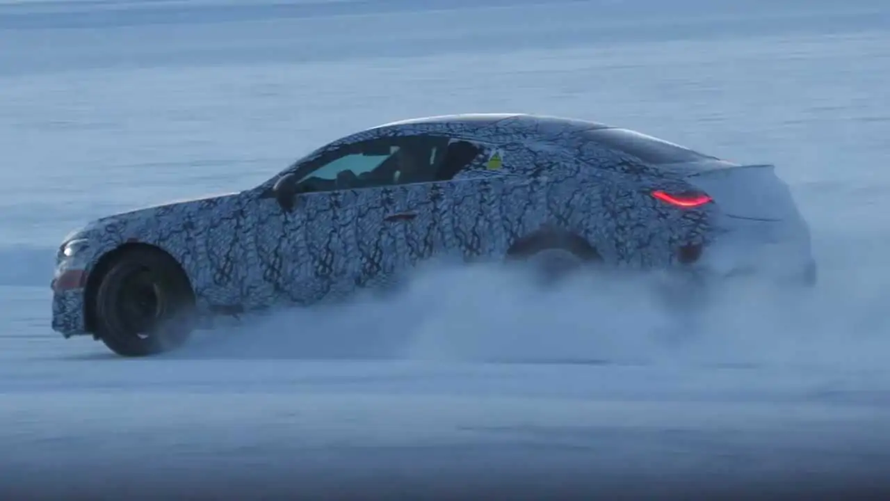 Jetzt zeigt sich, warum Autohersteller gerne im skandinavischen Winter testen: Die Mischung aus Schnee und meist diesigem Wetter hilft zusätzlich bei der Tarnung und auf zugefrorenen Seen lassen sich die neuen Performance-Fahrzeuge ausgiebig erproben. Die Tarnung hat sich bei dem Prototyp übrigens nicht verändert. Aber das trübe Licht lässt die sportlichen Elemente im Design nur erahnen.