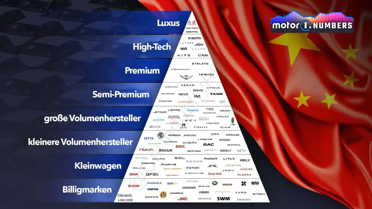 Im Oktober 2025 gibt es über 100 chinesische Pkw-Marken, mehr als die europäischen (57), amerikanischen (14), japanischen (14) und koreanischen (4) zusammen. Mit über 24 Millionen verkauften Fahrzeugen in einem einzigen Jahr ist China ein gigantischer Markt, der eine riesige Vielfalt an Marken aufnehmen kann. Aber sie sind nicht alle gleich.