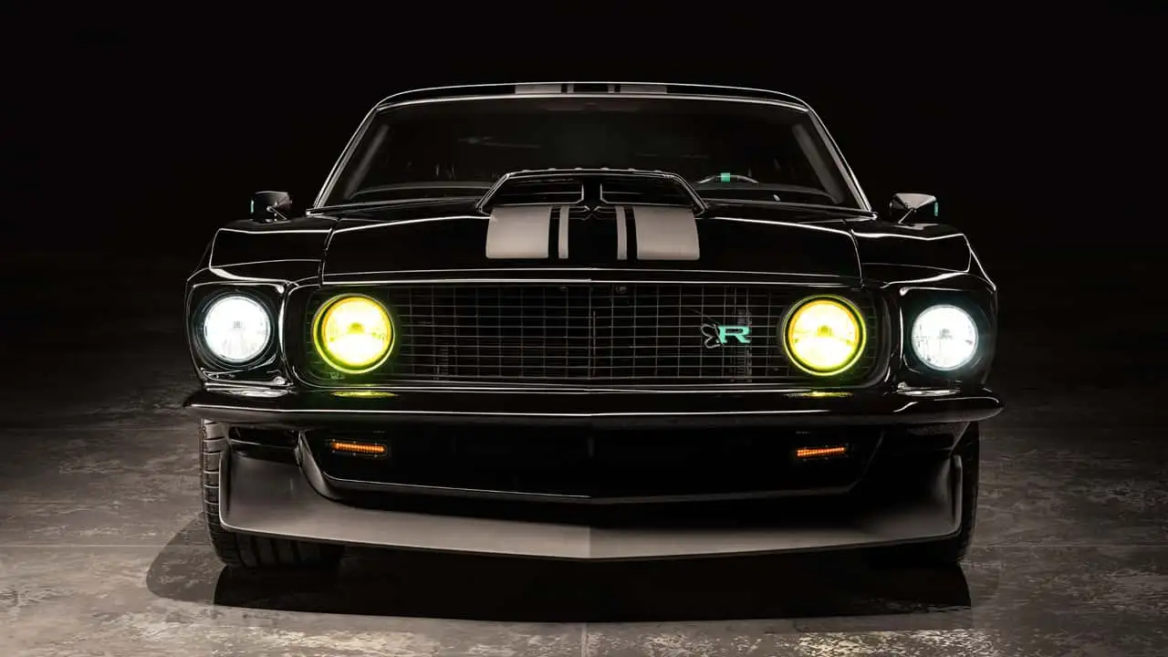 Die Karosserie des Mach 1 wurde vorn um 5 Zentimeter, hinten um 9 Zentimeter verbreitert. Der Radstand wuchs um knapp 4 Zentimeter. Dezente Carbonfaser-Details zieren das Exterieur – für ein Ringbrothers-Projekt erstaunlich zurückhaltend. Viel vom klassischen Mustang-Design blieb erhalten, wurde jedoch subtil überarbeitet und wirkt nun deutlich aggressiver. Das Heck samt Beleuchtung ist komplett neu gestaltet, während die Linien des Originals respektvoll weitergeführt wurden.