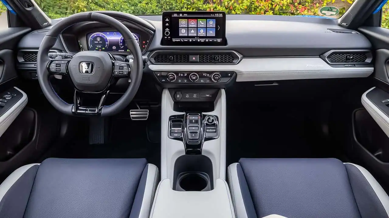 Das Armaturenbrett des neuen Prelude ist dem des Civic sehr ähnlich: Ein horizontales Layout, glatte Oberflächen und funktional organisierte Bedienelemente. Die Bordtechnik ist um zwei Displays herum angeordnet. Es gibt ein digitales 10,2-Zoll-Kombiinstrument und einen 9-Zoll-Infotainment-Bildschirm, der mit Google Built-In, Apple CarPlay und Android Auto kompatibel ist. Auf die Ohren gibt's von einem Bose-Soundsystem.