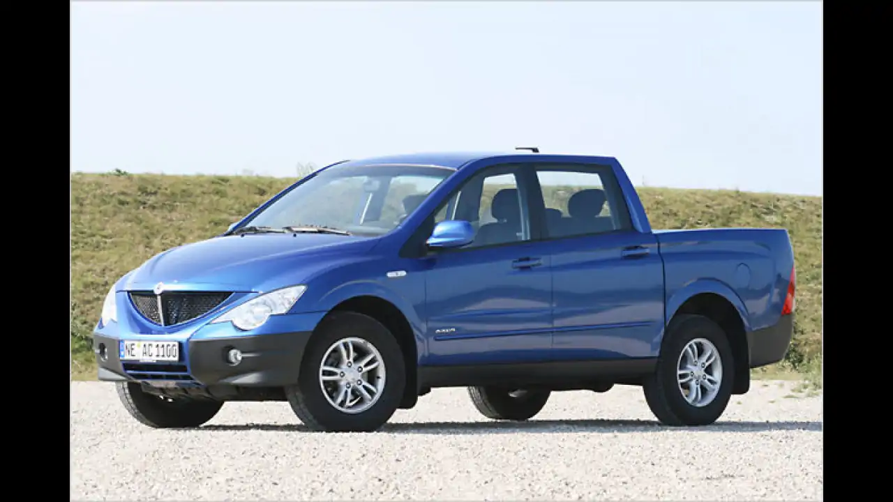 Insgesamt bleibt es aber dabei: Der SsangYong ist gut ausgestattet und günstig. Und wie macht er sich an der Zapfsäule? Laut Hersteller fließen 8,0 Liter Diesel auf 100 Kilometer in den Motor. Auf den ersten Blick recht viel für einen Diesel der 140-PS-Klasse; ein allradgetriebener VW Passat braucht rund anderthalb Liter weniger. Aber der ist eben auch deutlich windschlüpfriger. Im Konkurrenzvergleich schneidet der SsangYong gut ab, denn die Vergleichsmodelle von Ford, Mazda und Mitsubishi liegen über diesem Wert. Auf unseren Testfahrten brauchten wir allerdings wie fast immer etwas mehr als der Hersteller angibt, nämlich 9,1 Liter. Die Euro-4-Norm wird erfüllt, einen Partikelfilter gibt es jedoch nicht – anders als bei der Konkurrenz. Normalerweise wird der Actyon Sports nur als Lkw zugelassen. Ordert man aber die Laderaumabdeckung für 1.200 Euro dazu, kann man das Auto auch als viersitzigen Pkw zulassen.